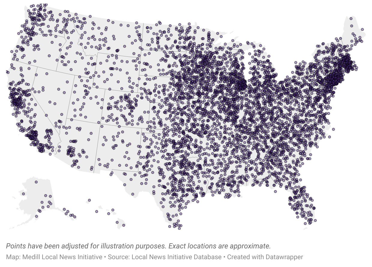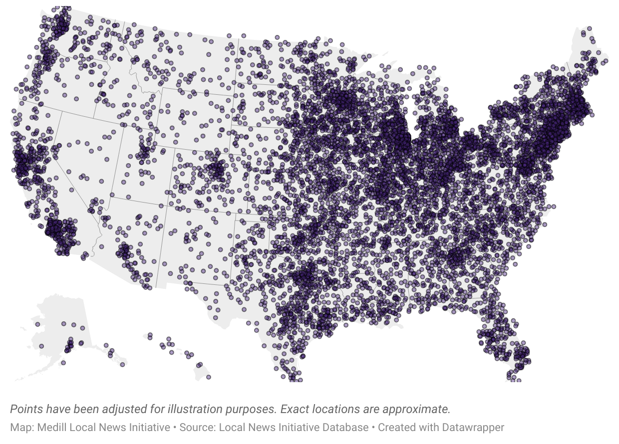 In the first quarter of the 21st century, a period marked by rapid digital innovation and evolution, local newspapers and the U.S. news media industry have undergone profound shifts. Close to 3,500 newspapers have vanished, leaving one in every four Americans with limited access to a local print newspaper. These disappearances have occurred across the country but are especially pronounced in the suburbs of large cities, where hundreds of papers have merged together. The papers that remain look profoundly different than just a few decades ago, with significantly consolidated ownership and reduced print frequencies.